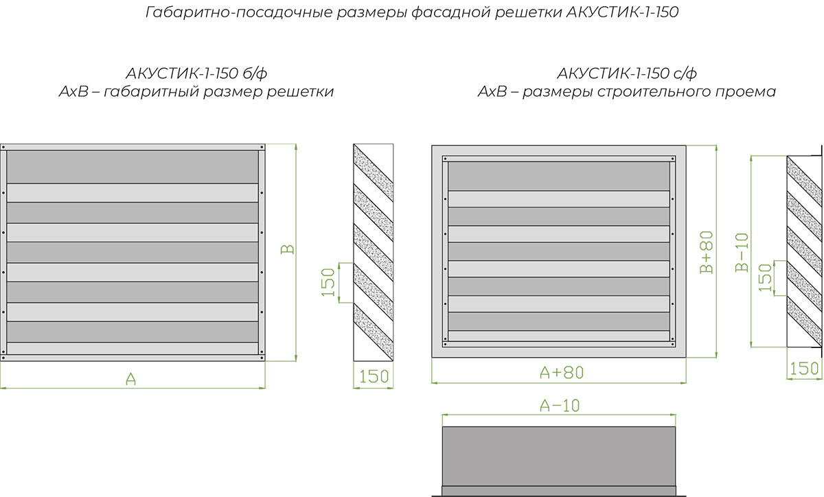 АКУСТИК - шумопоглощающая наружная решетка, предупреждающая проникание шума из окружающей среды в здание через приточные или вытяжные отверстия и наоборот. Решетка Акустик 1-150 имеет односторонние жалюзи глубиной 150 мм.